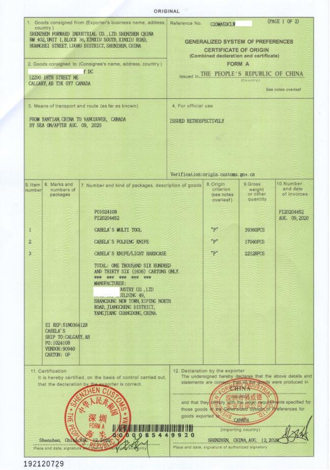 Çin Form A Menşe Şahadetnamesi Düzenlemeyi,