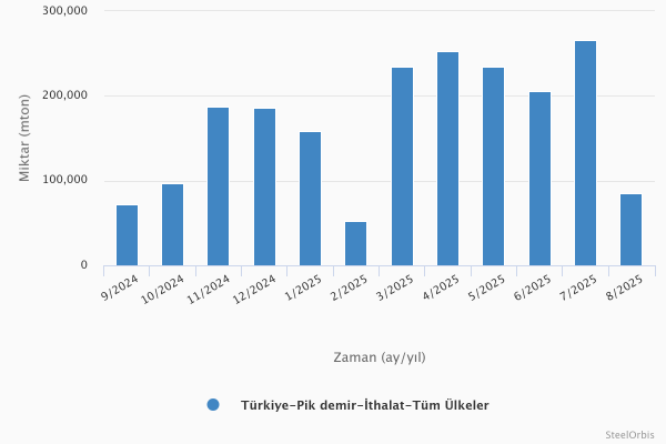 Türkiye’nin pik demir ithalatı 2025 döneminde %64,8 yükseldi