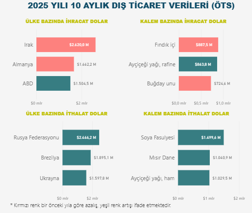 En çok ithalat yapılan ülkeler sıralamasında da ilk sırada Rusya Federasyonu geldi. Rusya’dan yapılan ithalat 2,47 milyar dolar oldu. İkinci sıra, 1,9 milyar dolarlık ithalatın gerçekleştirildiği Brezilya’nın oldu. 1,6 milyar dolarlık ithalatın yapıldığı Ukrayna ise üçüncü sırada yer aldı.