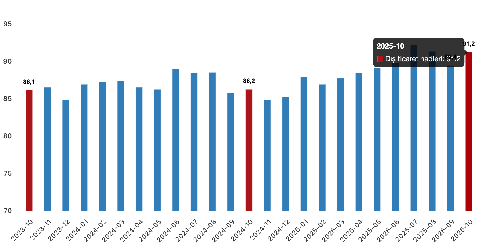 Dış ticaret haddi 2025 yılı Ekim ayında 91,2 olarak gerçekleşti