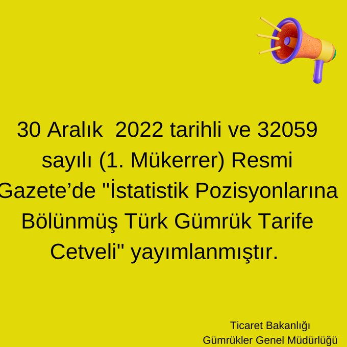Ticaret Bakanlığı internet sitesi üzerinden aşağıda yer alan uzantı aracılığıyla İstatistik Pozisyonlarına Bölünmüş Türk Gümrük Tarife Cetveli'nin excel tablosuna erişilmesi mümkündür.