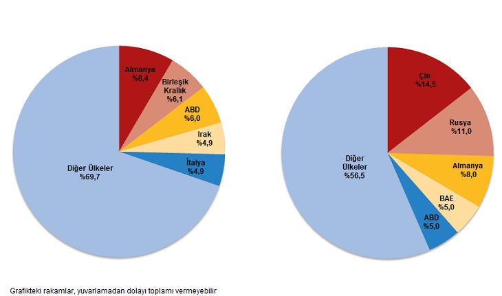 İthalatta Çin ilk sırayı aldı. Eylül ayında Çin'den yapılan ithalat 4 milyar 264 milyon dolar olurken, bu ülkeyi sırasıyla; 3 milyar 247 milyon dolar ile Rusya Federasyonu, 2 milyar 363 milyon dolar ile Almanya, 1 milyar 485 milyon dolar ile Birleşik.. daha fazla  Haberi Okudum!